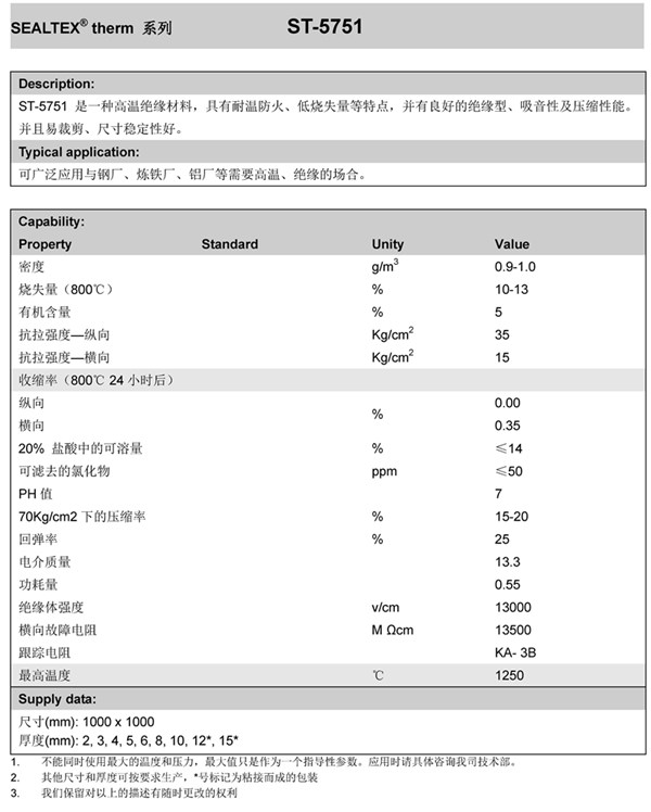 ST-5751 MILLBOARD SHEETS FOR HEAT AND INSULATION