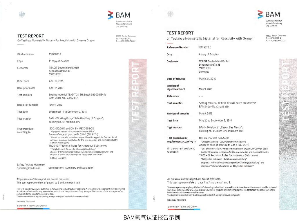 SealTex索拓合作品牌TEADIT泰迪如下型号具有BAM氧气认证测试报告: