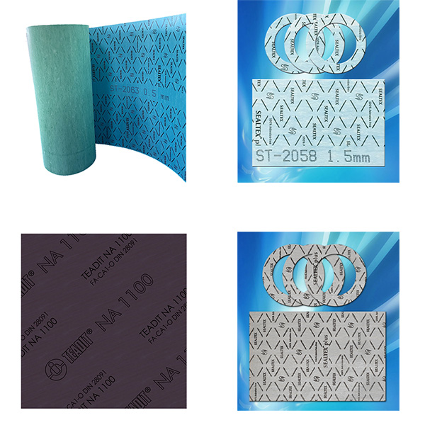 2.中高温型(无石棉纤维橡胶板,四氟板/改性四氟板):通常使用温度<250℃,常用型号有ST-2028-39,ST-2058,AFM34,TF1570改性四氟板,24SH膨体四氟板等,适用于汽油机、柴油机,工业泵阀,石化、压缩机、换热器、食品、制药等行业。
