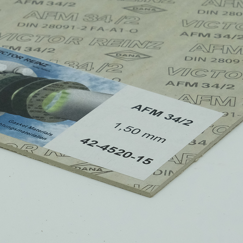 AFM 34/2 is an asbestos-free gasket material. It contains aramide fibers, inorganic fillers and other high-temperature resistant substances which are bonded with high-quality elastomers with high strength and especially gas-tight under increased pressure and increased temperature.