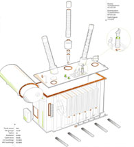 1、Power transformers 2、Distribution transformers 3、Switchgear 4、Tank cover 5、Oil gauge 6、Valve 7、Radiator 8、Cable box 9、LV bushings 10、(HV bushings 11、..... |