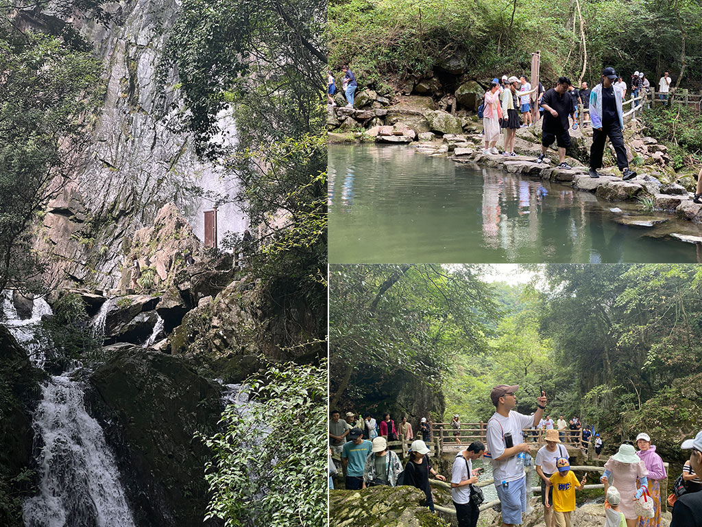 集体徒步观光小而美的嵊州百丈瀑布在越剧小镇