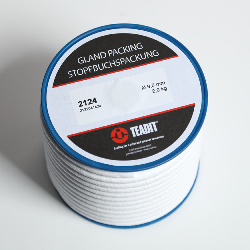 TEADIT style 2124由100%纯PTFE带编织而成,为了进一步提高气密性,编织成的盘根被紧紧地包裹在另外一层PTFE中。