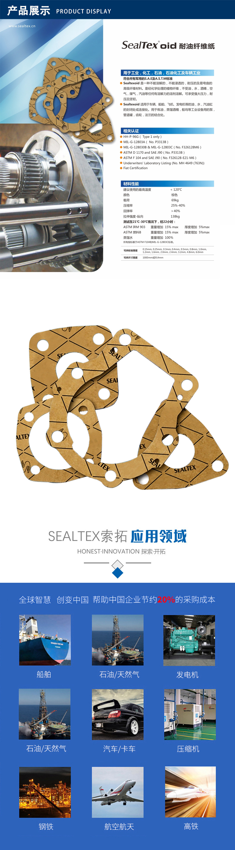 上海索拓密封材料有限公司长期致力于适用于各行业的密封垫、无石棉垫片、环保垫片和耐高温隔热产品的生产、加工及销售