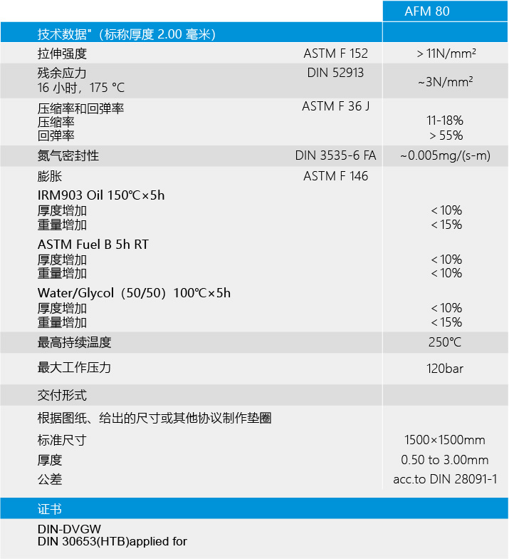 AFM 80 完美地将密封技术的主要方面融合在一种材料中:适应性、气密性和强度。它具有出色的机械/耐热性,同时又具有柔软性和适应性。AFM 80 可实现卓越的密封效果,即使在低压力下也能适应部件表面,甚至在压力、振动或狭窄的密封网产生的重负荷下也是如此。这使得 AFM 80 密封垫成为解决棘手密封问题的最佳选择,例如天然气和氢气应用、冷却和空气压缩机、热交换器、燃气表、变速箱、泵、配件等。
