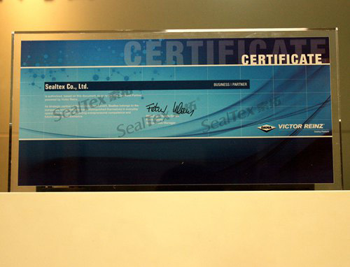 我司获得了VICTOR REINZ公司颁发的商业合作伙伴认证证书。