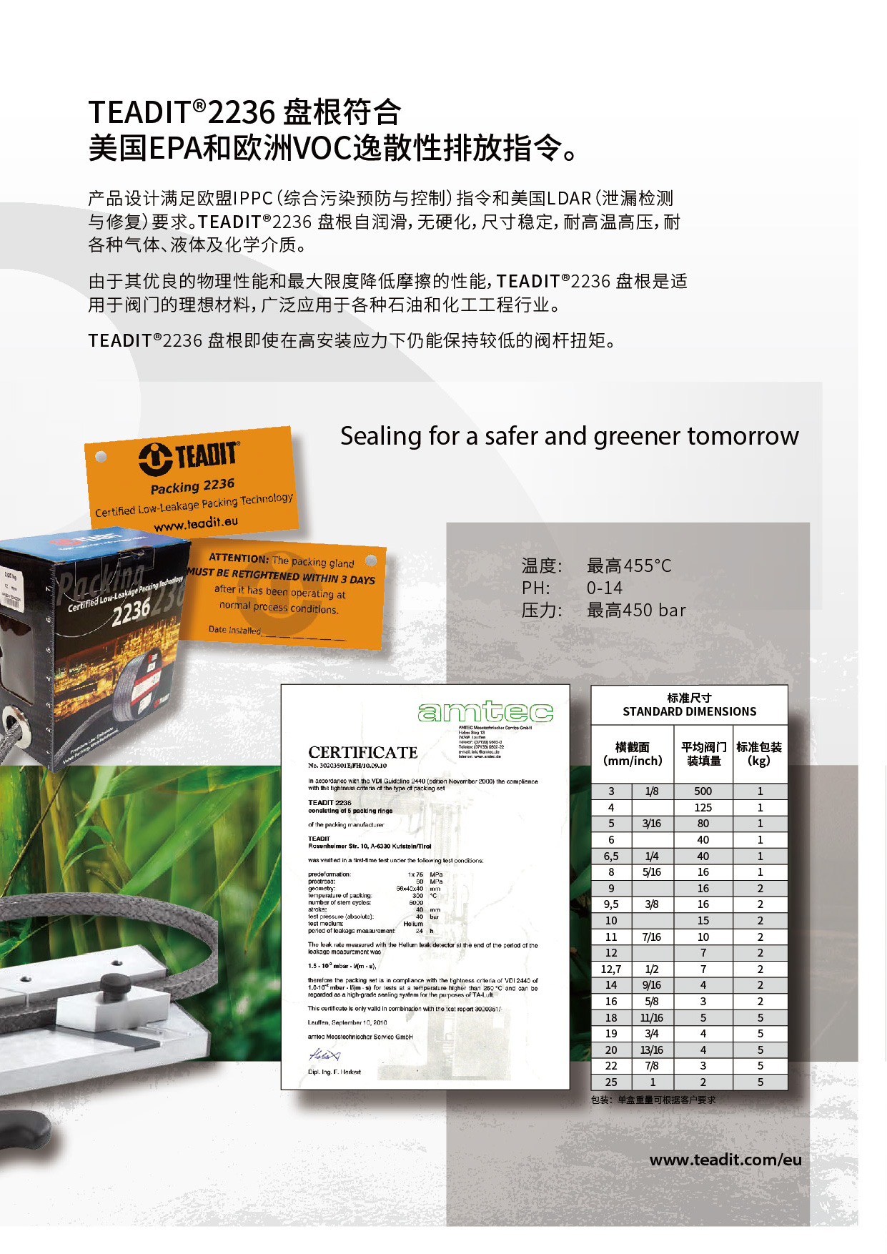 由于其优良的物理性能和最大限度降低摩擦的性能, TEADIT® 2236 盘根即使在高安装应力下仍能保持较低的阀杆扭矩,适用于阀门的理想材料,广泛应用于各种石油和化工工程行业。
