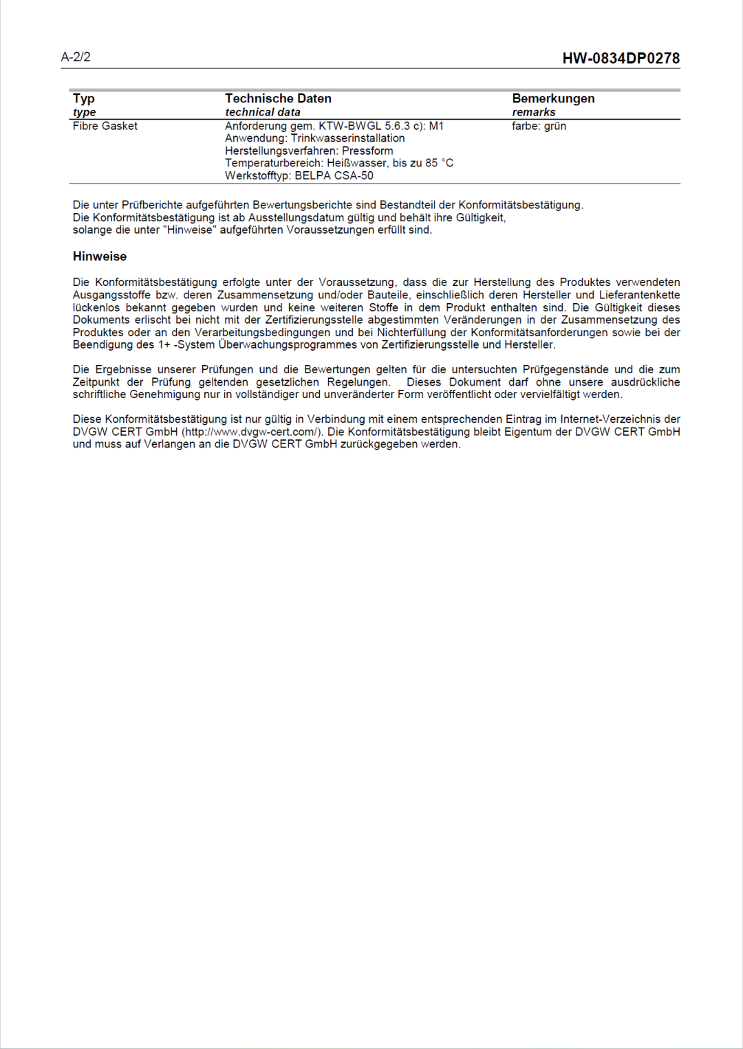 目前,我司合作伙伴西班牙标牌BELPA CSA-50无石棉板已获得KTW-BWGL认证。