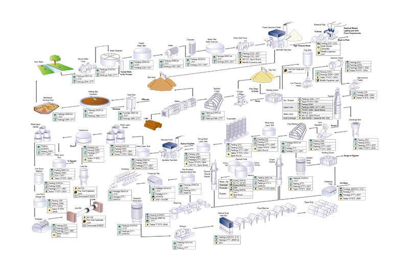 TEADIT泰迪的过程装备密封技术可应用于造纸全流程中的各种专业设备,如:锅炉给水泵、脱氧器、水源泵、绳结分离器、石灰浆清洗机等造纸装备中,能有效减少停机时间并降低维护成本。