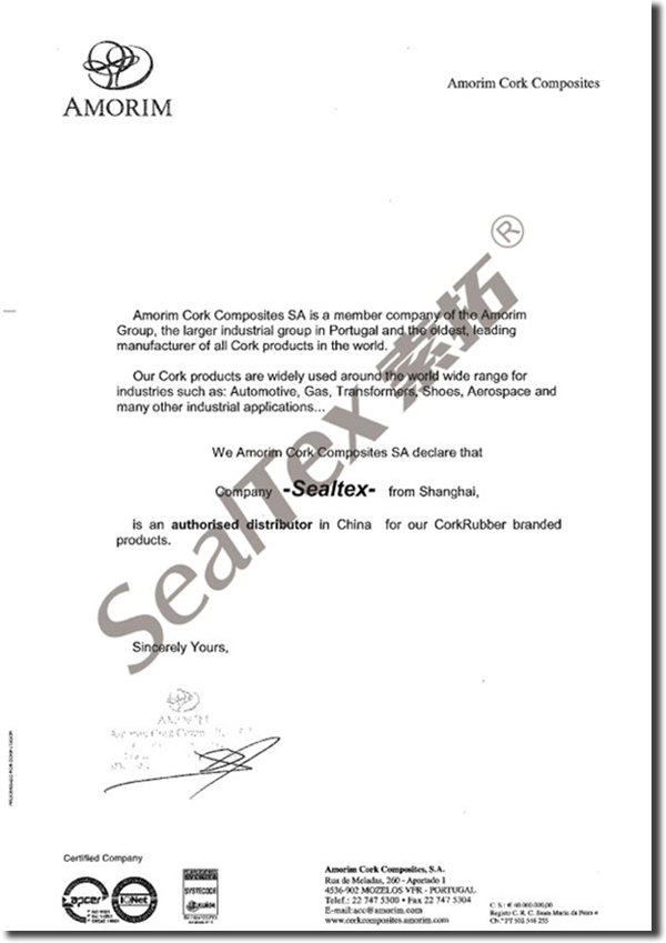 上海一柯索拓密封材料有限公司为AMORIM阿莫林在中国的总代理